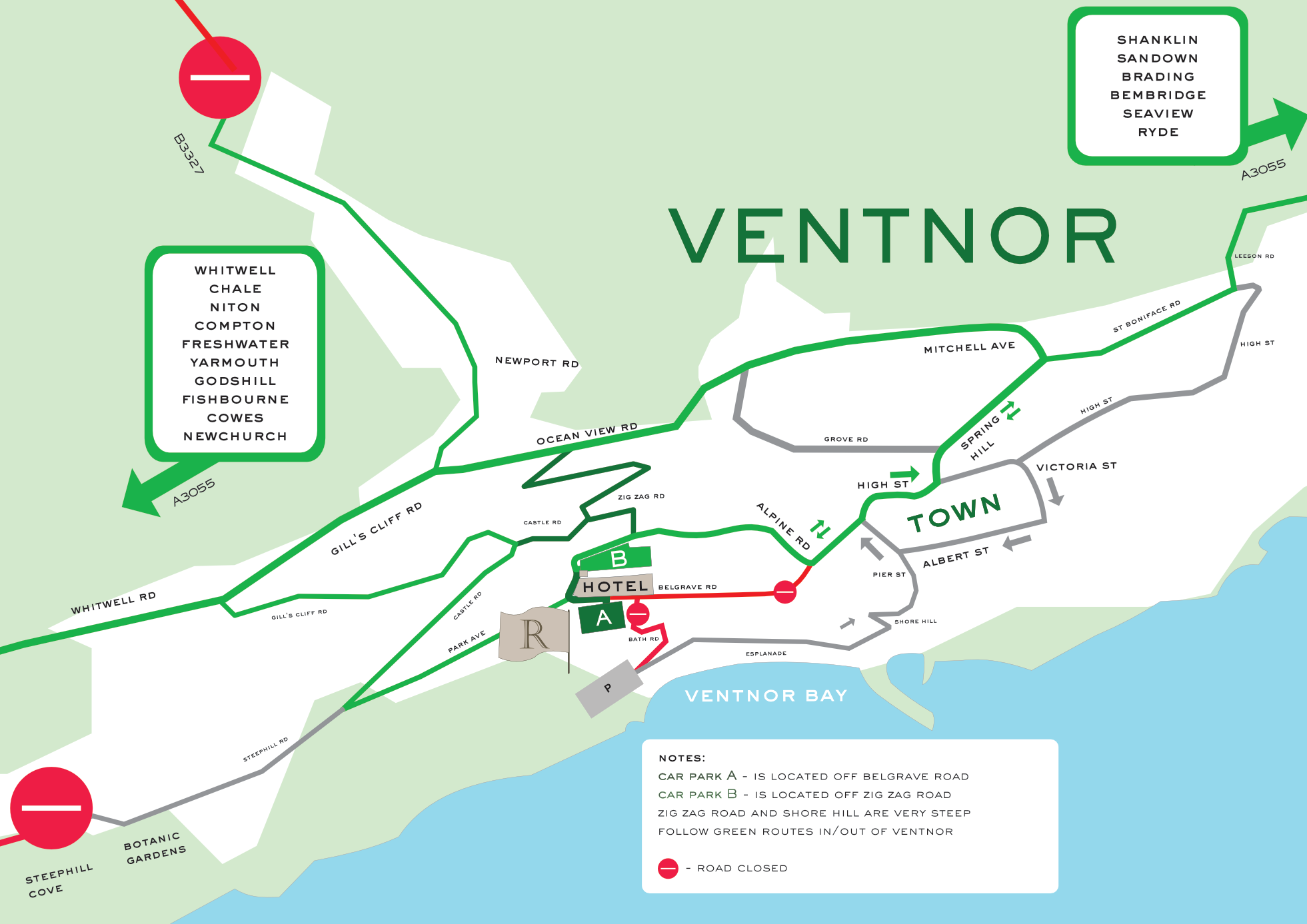 The nearest bus stops in either direction is on Park Avenue, outside the Hotel. (Less than 1 minute walk West) The bus stop is 0.04 miles from Royal Hotel. Buses to this stop are the number 6. This route ends at Newport Bus Station via Whitwell, Niton, Chale, Chillerton. For the majority of routes you will need to catch a number 3 bus from St Catherines Church. (A 4 minute walk East) The bus stop is 0.20 miles from Royal Hotel. This route ends at Newport Bus Station via Rookley, Godshill, Wroxall, Ventnor, Shanklin, Sandown, Ryde Bus Station.