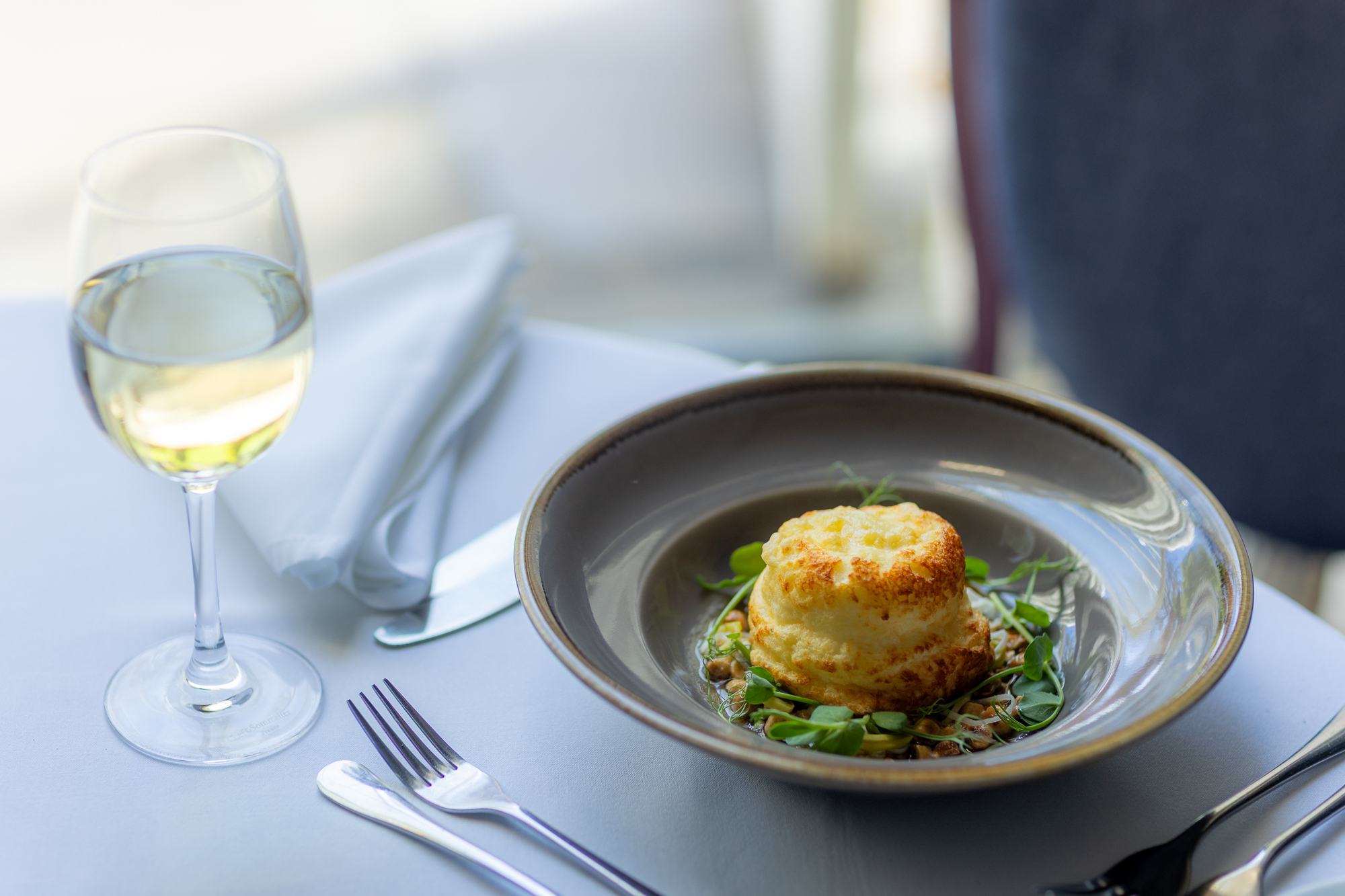 The Gallybagger soufflé is rich yet delicate, infused with nutty brown butter and finished with hazelnuts and pickled leeks, bringing both texture and balance to the dish.
